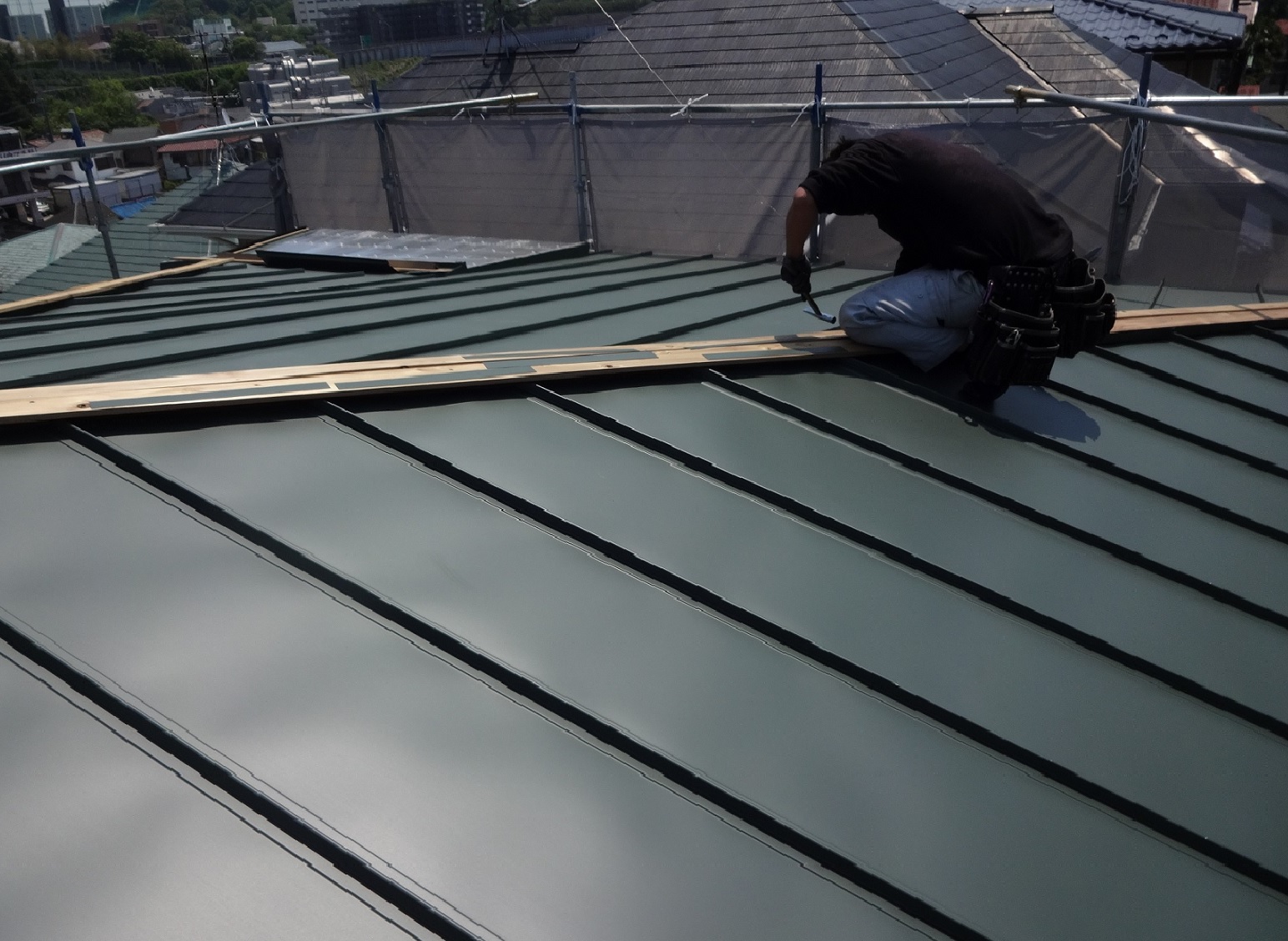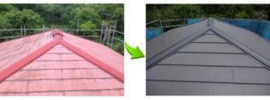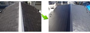棟板金の交換後に、屋根塗装を行って仕上げていきました。
