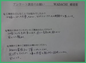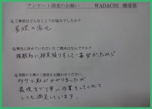 多少工期がかかりましたが、最後まで丁寧に作業をしてくれてとても満足しています。