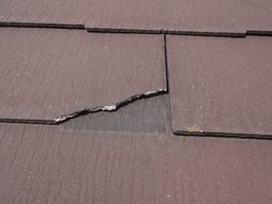スレート屋根材の剥がれや割れた箇所から雨水が入り込みます。防水シートが傷んでいると雨漏りすることがあります。