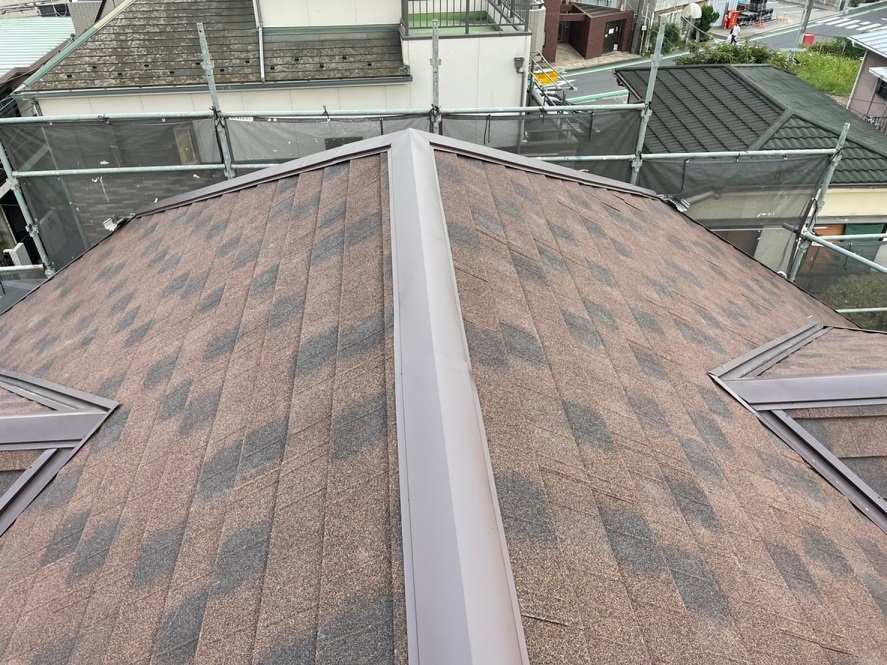 新しい屋根材は「旭ファイバーグラスのリッジウェイ」を使用しています。
