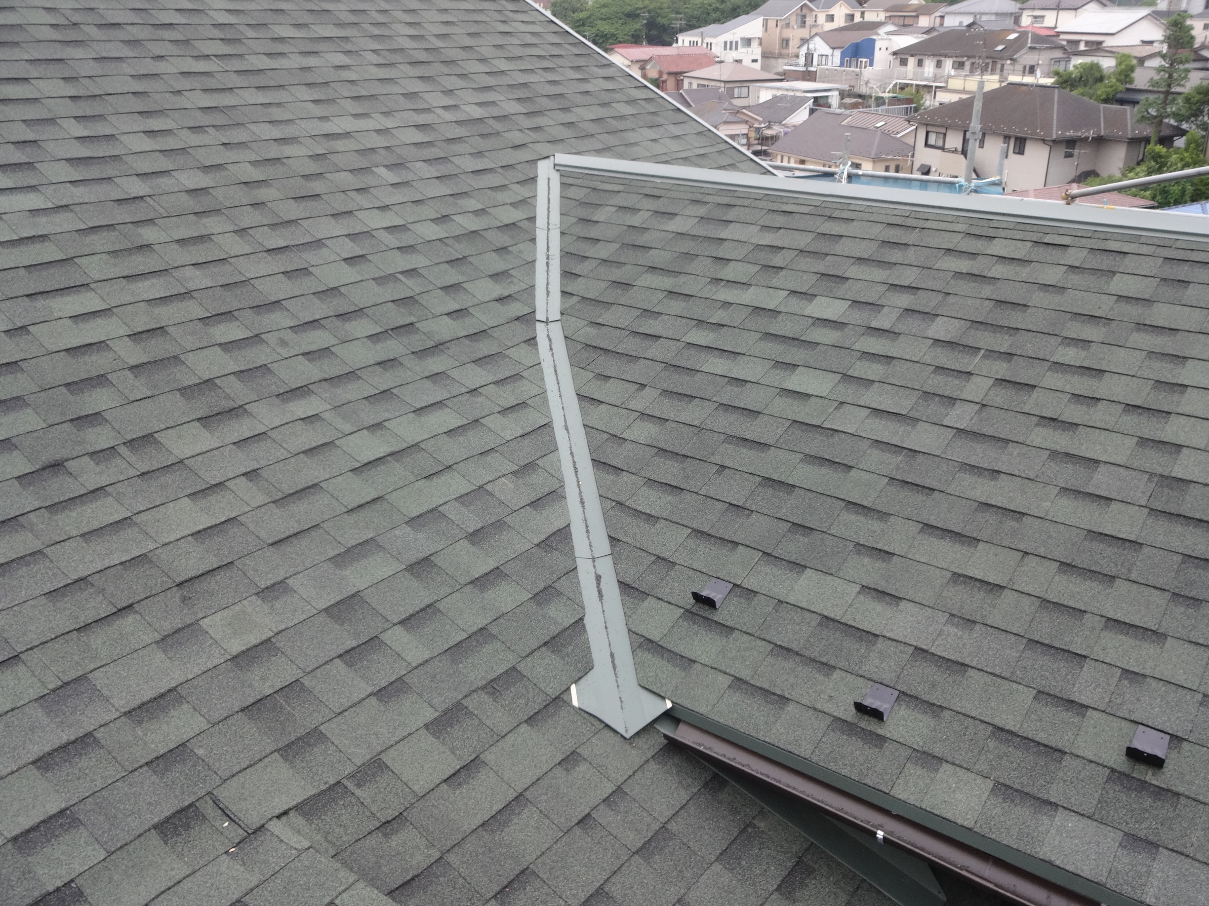 屋根部分はアスファルトシングル屋根に防水施工された状況で仕上がっていました。ですが、年数経過の影響で各種隙間などが生じ、劣化が進んでいました。