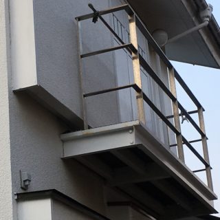 点検を行うと、上のバルコニー部分のモルタルから雨漏りしていたため、屋根カバー工法で修理していきました。