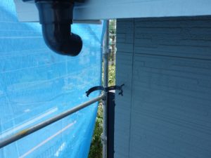 軒樋の取付後、竪樋を設置していきます。