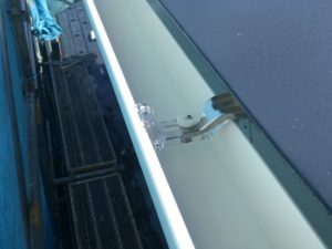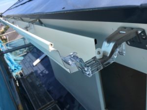 吊り金具設置後、新しい塩ビの軒樋を取付けていきます。