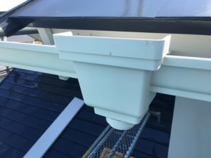 軒樋取付後、竪樋とつなぐため、集水器を取付けていきます。