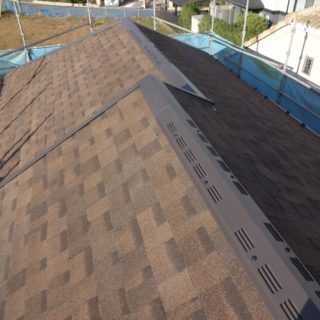 下がり棟の施工完了後、笠木板金を仕上げていきます。
