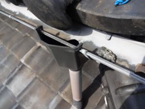 軒樋を設置したら、集水器と竪樋も取付けを行っていきます。