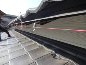 角樋用の枯葉ネットを雨樋に設置していきます。