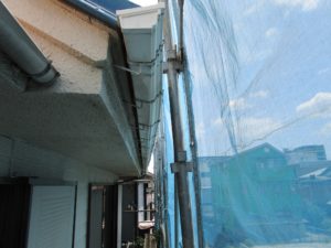 解体後に、固定する金具を軒先に設置して、その金具に雨樋を取付けていきます。