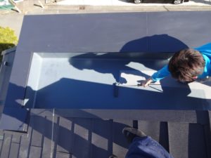 屋根材と笠木の取合いには、コーキング処理を行っていきます。