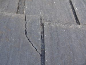 屋根材の場所によっては、ひび割れが発生しており雨水が内部に侵入して傷める原因となります。