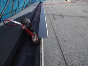 厚さ3.5mmのニスクカラーのガルバリウム鋼板をカバーしていきます。
