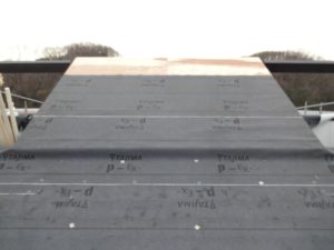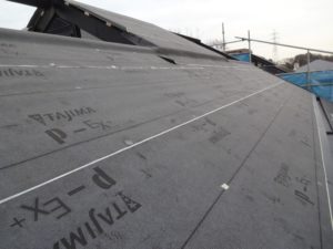 明り取り(窓)の箇所に木下地を新設して全体的に防水シート(ゴムアスルーフィング)を張っていきます。