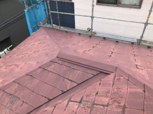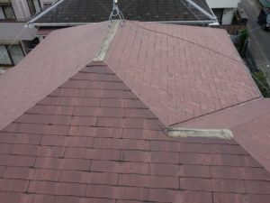 既存のコロニアル屋根に、新しく金属のガルバリウム鋼板を上張りして仕上げています。
