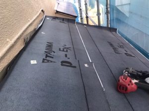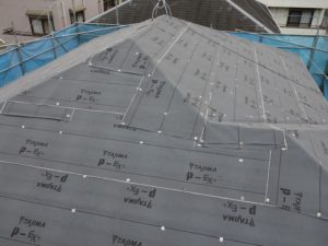 役物を解体したら、防水シート(改質アスファルトルーフィング)を張っていきます。