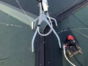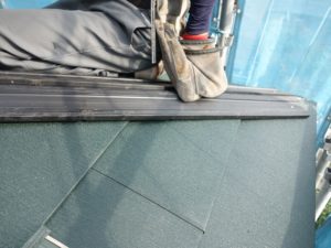 新しい屋根材を張り終えたら、中央に新しい棟板金を設置していきます。