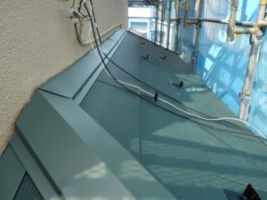 棟包みの取合いは、コーキングを打ち、防水処理して仕上げていきます。