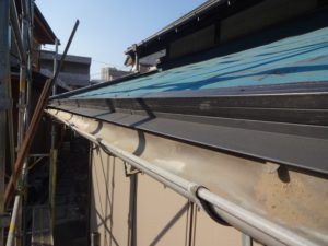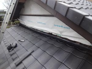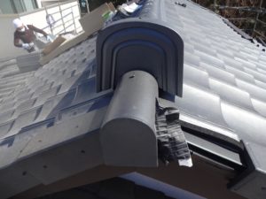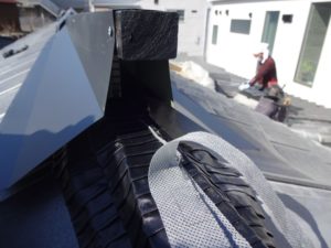 棟に金具を設置後に、タフモックを取付けて金属の面戸を被せて設置していきます。