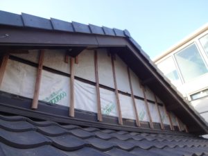 また、雨漏り等はありませんでしたが建物の経年劣化に伴い、屋根構造の歪み等も発生していたので、軽量瓦への葺き替えを行いました。