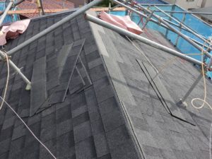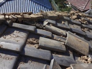今回は、瓦屋根の棟部分が、台風によって崩れて落下してしまい、お問合わせをいただきました。