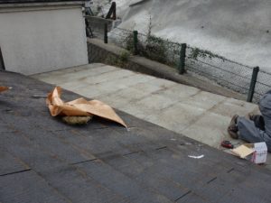 工事着工までの応急処置として、ブルーシートで養生を行っていきました。