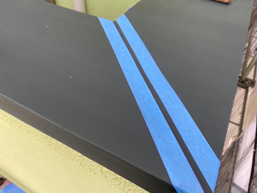 板金材の取付け後、マスキングで養生を行い、コーキングを打ち防水処理を行っていきます。