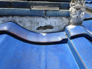 また漆喰が剥がれると、内部の葺き土も剥がれてしまう原因となります。葺き土は棟瓦を固定している土台のため棟の崩れや雨水が入り込み内部の防水シートを傷める原因となりますので、定期的なメンテナンスが必要なのです。