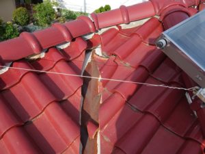 川崎市麻生区のM様邸で、棟瓦(むねがわら)の「漆喰(しっくい)補修」と「瓦補修」、「温水パネルの解体処分」を行いました。