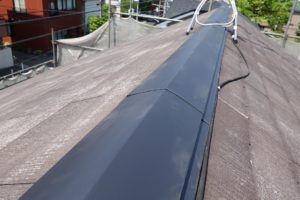 下地(タフモック)に新しい板金材を取付けて、棟板金交換の完了です。