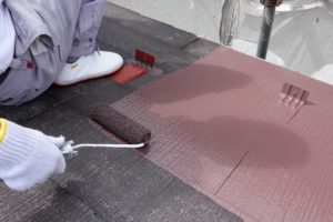 スレート瓦には、下塗り(シーラー)を塗っていきます。