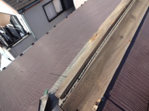 木下地(貫板)が腐食して、一部の釘が抜けたことにより、強風で棟包み(板金材)が剥がれていました。