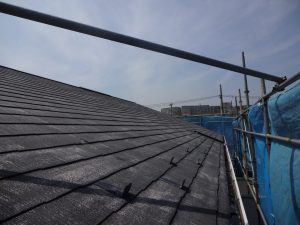 キレイに汚れが取り除かれた証拠と、屋根表面の塗膜が劣化してきた証拠でもあります。
