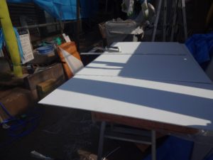 新規軒天の素材には、「ケイカル板(ケイ酸カルシウム板)」を使用していきました。