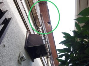 軒天の腐食箇所のちょうど上部にあたるため、ここが原因なのは間違いありません。