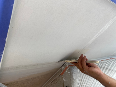 軒天材のつなぎ目を分からなくするためにパテをします。
