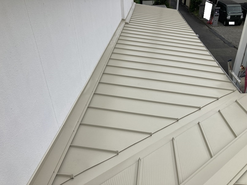 谷板金から下の屋根形状が複雑になっている箇所から台風時に雨水が侵入しているようでした。