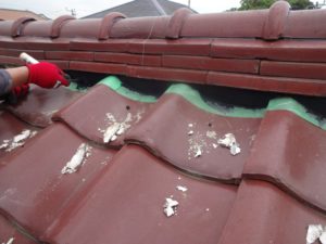 そのため漆喰補修工事と一緒に、強風時などで瓦が飛んでしまわない様に、しっかりと締め直しか接着補修が必要です。