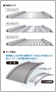 「アーチ」加工も行え、ウェーブ状の屋根デザインも可能になり、独特のユニークさやオリジナリティが発揮されます。