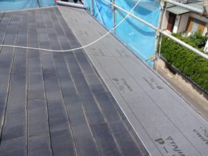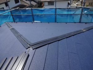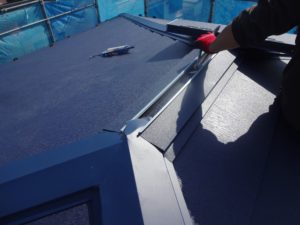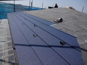 水切りの取付け後に、新規屋根材を張り上げていきます。