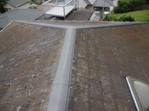 25年間メンテナンスをされていなかったので、屋根材にコケや汚れがたまっていました。