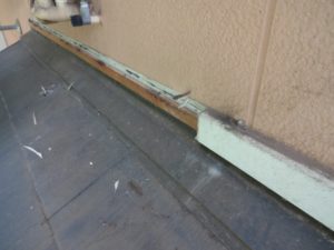 外壁との取合い部分の既存の雨押えを解体撤去していきます。