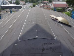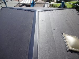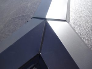 新規屋根材の切れ目に、カバーを取付けて完了です。