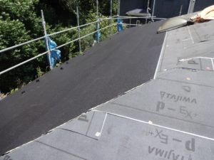 防水シートは、田島ルーフィングのPカラーEX+(プラス)を使用していきます。