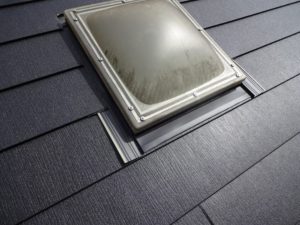 先に天窓のまわりに板金を設置して、その上から新屋根材を被せます。