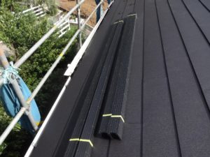 新規屋根材を張り終えたら、棟板金を設置していきます。