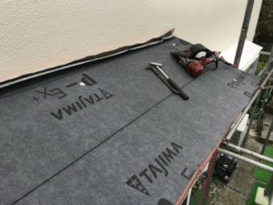 下地がフラットな状態になりましたら、防水シートを張っていきます。