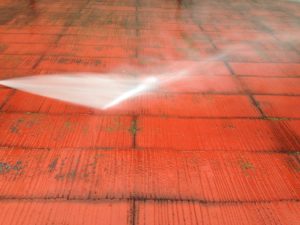 まずは、コケや汚れがたまった屋根材を高圧洗浄で綺麗に洗い流していきます。