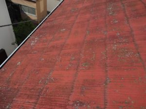 既存の屋根材は、化粧スレートで数十年前に塗装をされています。