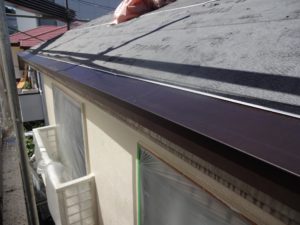 防水シート施工後、軒先に唐草を取付けを行っていきます。