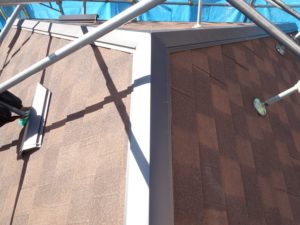 ディプロマット施工後、本体に谷カバーを取付けていきます。
